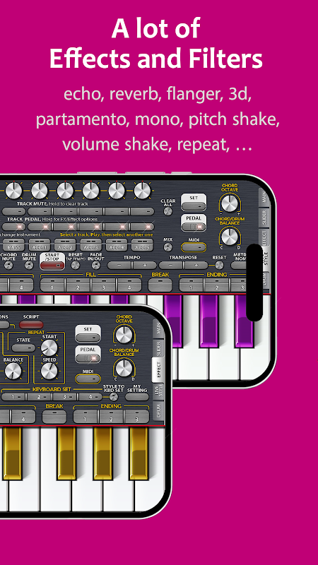 Per arricchire ulteriormente le tue creazioni, ORG 24: Your Music mette a disposizione una vasta gamma di effetti e filtri audio. Potrai aggiungere riverbero, delay, chorus e molti altri effetti per dare carattere e profondità al tuo suono. Sperimentare con i diversi effetti ti permetterà di trovare il tuo stile unico e distintivo.